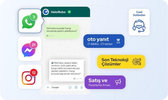 Müşteri ilişkilerini geliştiren son teknoloji çözümleriyle HeloRobo; WhatsApp, Instagram DM ve Facebook Manager gibi iletişim kanallarının canlı sohbetlerini satış ve pazarlama amacıyla kullanmaktadır.
