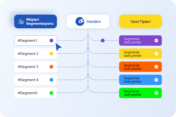 HeloBot, müşteri verilerini analiz ederek segmentasyon yapabilir ve her bir kullanıcıya kişiselleştirilmiş mesajlar gönderebilir. HeloBot, müşterilerin önceki etkileşimlerine, satın alma geçmişine ve tercihlerini analiz ederek her bir müşteriyle daha özelleştirilmiş bir deneyim sunar. Bu özellik, satış süreçlerini daha verimli hale getirir ve müşteri bağlılığını artırır.