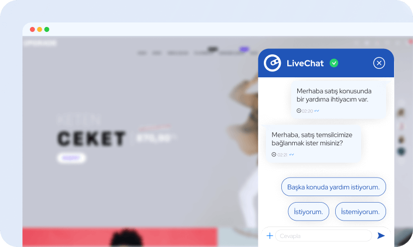 Live Chat, web siteleri ve e-ticaret platformları için geliştirilen anlık mesajlaşma sistemidir. Ziyaretçiler, internet siteniz üzerinden doğrudan bir müşteri temsilcisiyle veya sunduğumuz Helobot ve Thinker gibi modüller aracılığıyla yazışarak hızlı destek alabilir. Bu sayede müşteri memnuniyeti artarken dönüşüm oranları da yükselir.